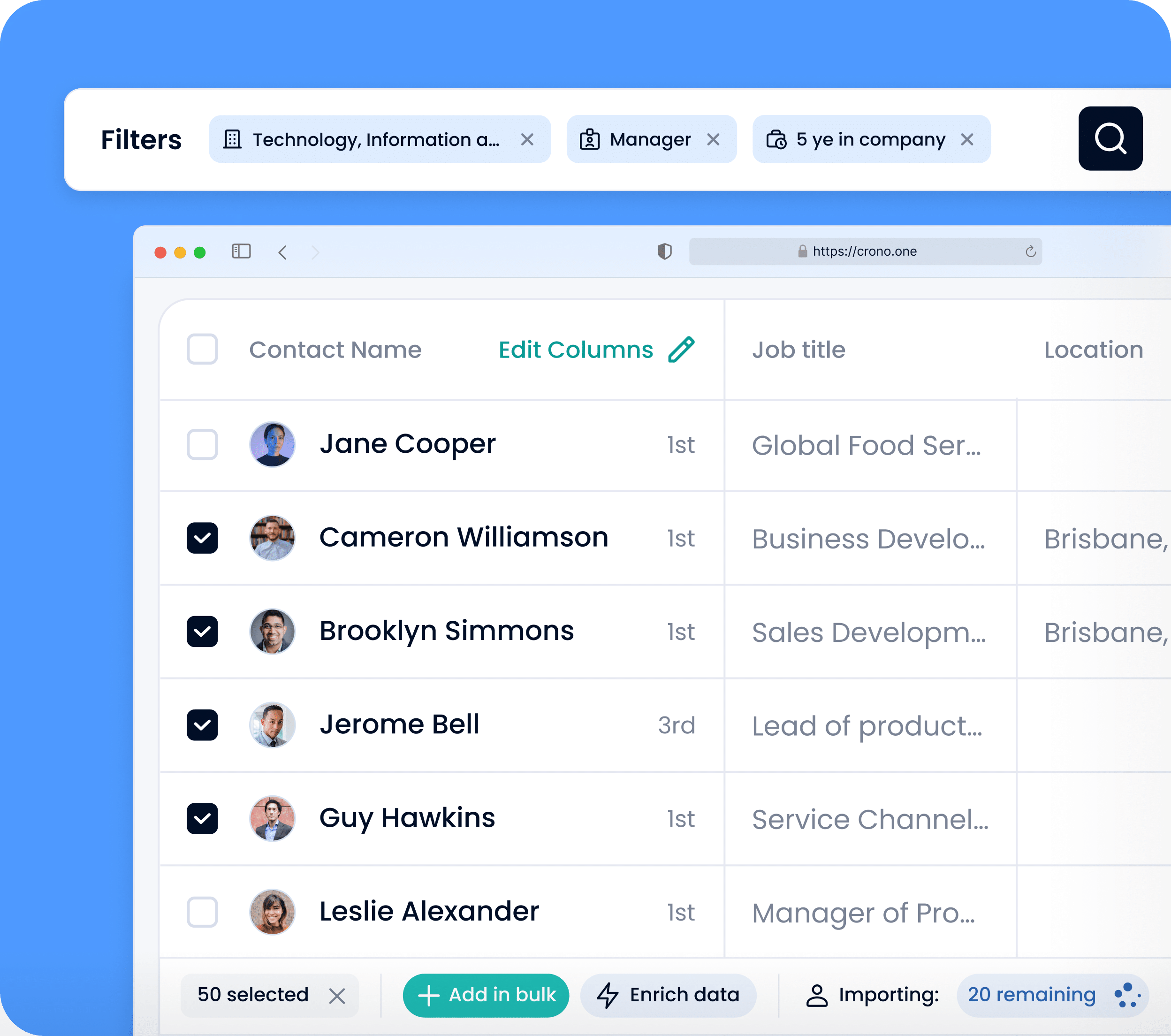 Crono gives every team the same source of truth, without slowing them down. RevOps defines ICPs, targeting logic and segmentation rules – Sales executes inside clear boundaries.